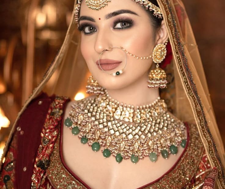 Stunning bridal makeup with perfect detailing, making you look breathtakingly beautiful on your wedding day.